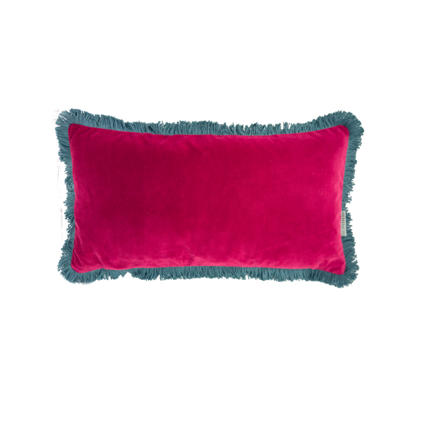 Velvety burgundy combined with subtle blue tassels conjures up an opulent and chic aesthetic. Crafted in Sweden, this cushion exudes a timeless sense of refinement.